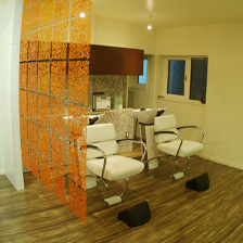ドイツ コジオール社のオレンジ色のパーテーションがアクセント